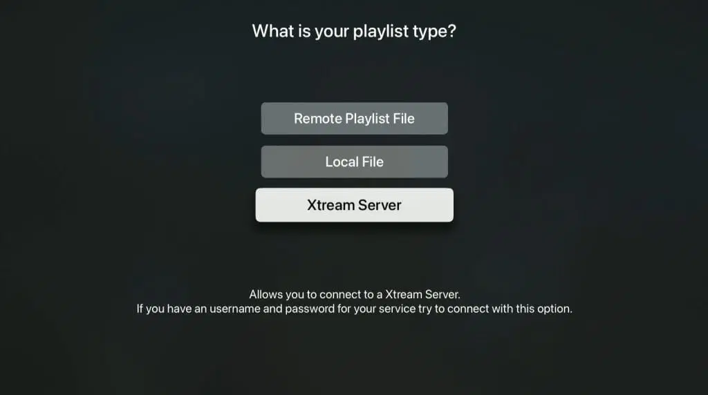 Suosittelemme, että lataat IPTV-soittolistasi Xtream Serverin kautta (eli käyttäjätunnuksella, salasanalla ja portaalin URL-osoitteella, jotka saat meiltä oston tai ilmaisen kokeilujakson yhteydessä).